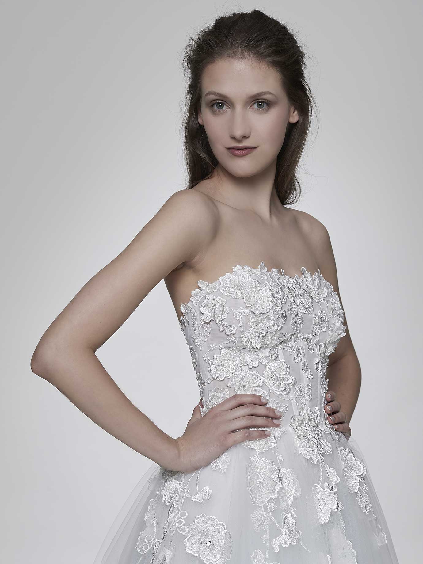 I capi della linea Vision hanno come protagonisti voile e tulle, arricchiti da petali di fiori sui corpini che si appoggiano delicati sulle spalle e in vita, intarsi di pizzo e gonne aeree e leggere. Una collezione che ho subito amato perché decisa, elegante ma allo stesso tempo particolare. Tradizione e innovazione si fondono per una donna moderna dal carattere forte.